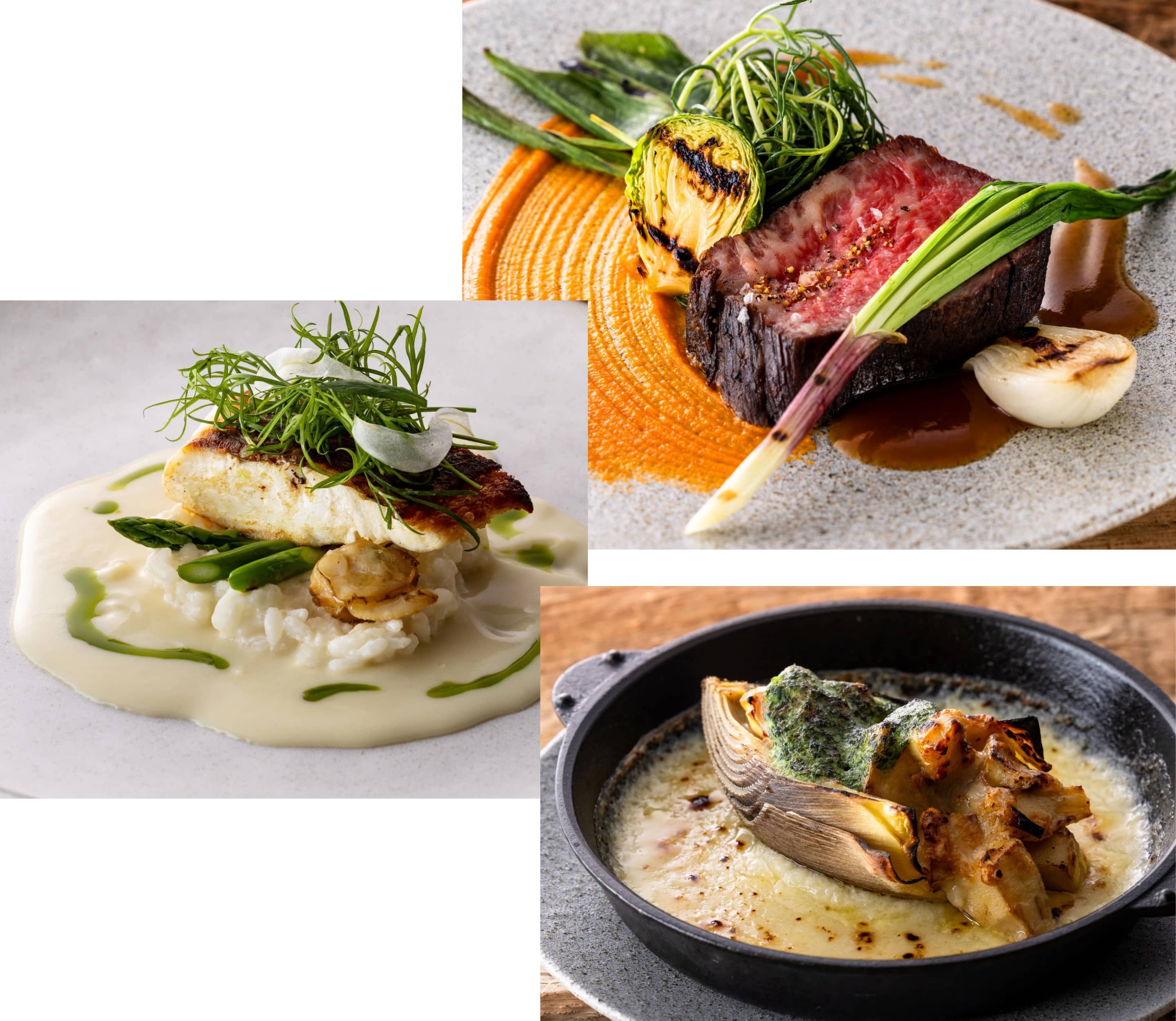 素材の味を引き出す薪窯の料理が重なり合い