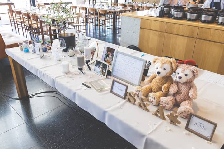 ゲストとの思い出の品を会場内にたくさん飾って待ち時間も楽しく